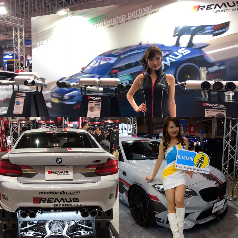 1月11日ー13日に幕張メッセで行われた日本最大の自動車ショー「東京オートサロン2019」。今年は国内でビルシュタインやレムスマフラーの正規代理店の阿部商会さんのREMUSブースにBMW M2 コンペティションを展示していただきました。オートサロンに合わせて新作のM2コンペティション用のレムスマフラーもギリギリで間に合いショー用に車高やボディーカラーリングを施しました。
