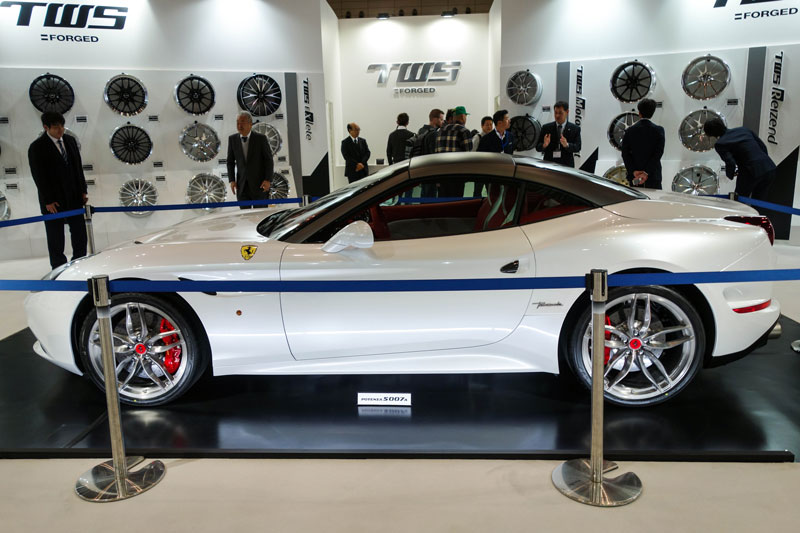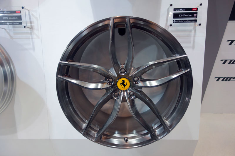 うちのオリジナルホイールでもお馴染みのTWS WHEELからは新作の超ジュラルミンに相当する「UDM」素材を使用したフェラーリ専用ホイール「EX-fF+udm」が登場。フェラーリ専用設計のためもちろんセンターキャップにも対応し、シンプルな5本ツインスポークはピッタリのデザインです。