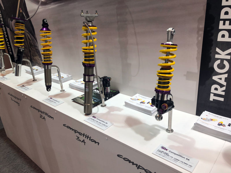 昨年のニュル24時間レース・VLNレースで昨年mcchip-dkt Gtronix360 Renault RS01GT3が装着したKWコンペティション4A 4WAYレース用ダンパーが展示。今年2019年はサンライズブルバード号のニュルで使用するポルシェケイマンにも4WAYが装着されます!