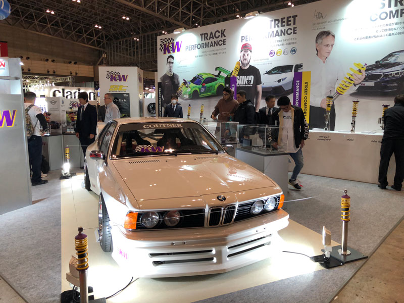 Akrapovic / KW suspension / Wagner Intercooler 輸入元の橋本コーポレーションさんブースにはPandem ボディキットを装着したBMW E24 6シリーズが展示。世界的に流行っているレストア&モディファイが施されたBBS Motorsport / KW Competitoin 3WAYダンパーとレーシングテイストな車両。