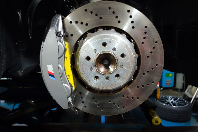 M2 Competitionにはフロント 6POD φ400mm, リア4POD φ380mmのM3/M4 カーボンセラミックオプションと同じサイズのブレーキシステムが装着されていますが、既に高速道路やワインディングの走行でブレーキ制動力不足が感じられたためサーキット走行前に交換を行いました。