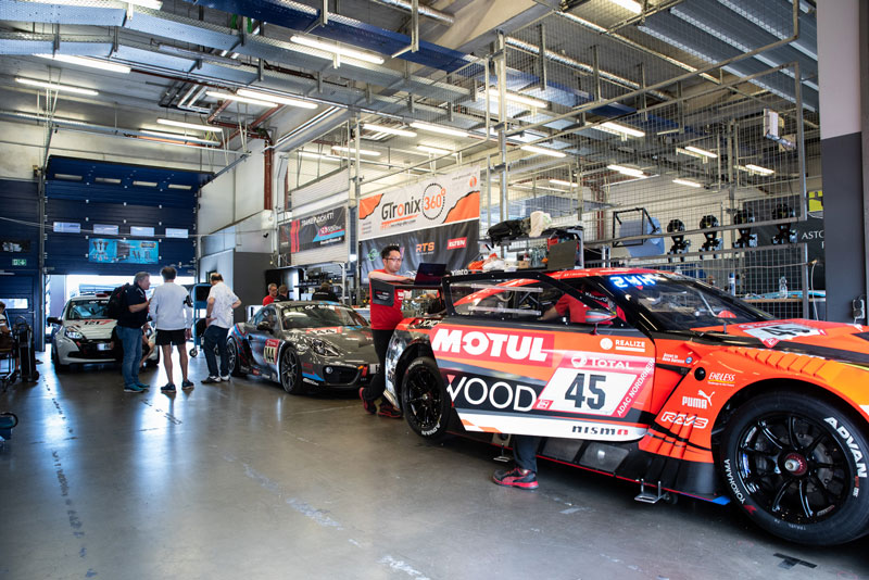 The GTronix360 team mccchip-dkr started with the Fivestar Fitness Porsche Cayman 981 and served as a support team for the Nissan GT-R Nismo GT3 used by KONDO Racing.