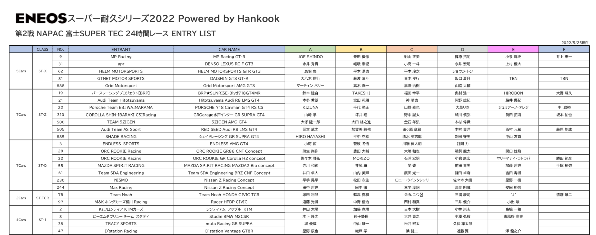 大会エントリーリスト:エントリーリスト
