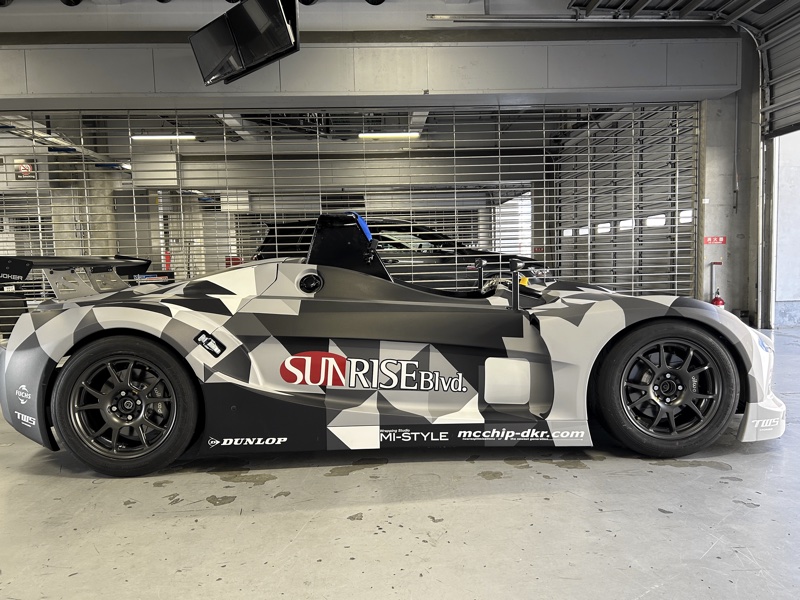 先日筑波サーキットでのドライビングレッスンでの試乗会を終え、マシンにレース用にフルカラーリングのラッピングデザインを施工しました。