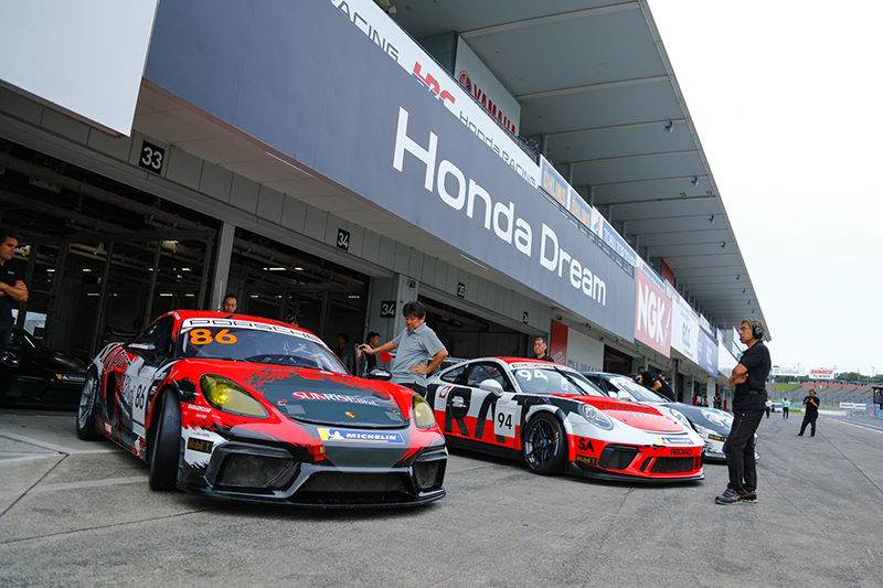 Porsche Sprint Challenge JAPAN (PSCJ)は通常 日曜日に予選+決勝レースが行われる1DAY開催でのフォーマットとなりますが、今大会では変則的に土曜日に予選、日曜日に決勝レース1 + 決勝レース2が行われました。