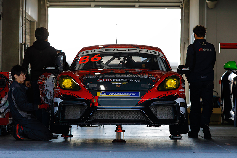 11月3日(日)静岡県富士スピードウェイにて開催されたポルシェ スプリントチャレンジジャパン GT4クラスへ 弊社レーシングレンタカーの#86号車 718 Cayman GT4 Clubsportを使用してジェントルマンドライバーの方にレース初参戦いただきました。